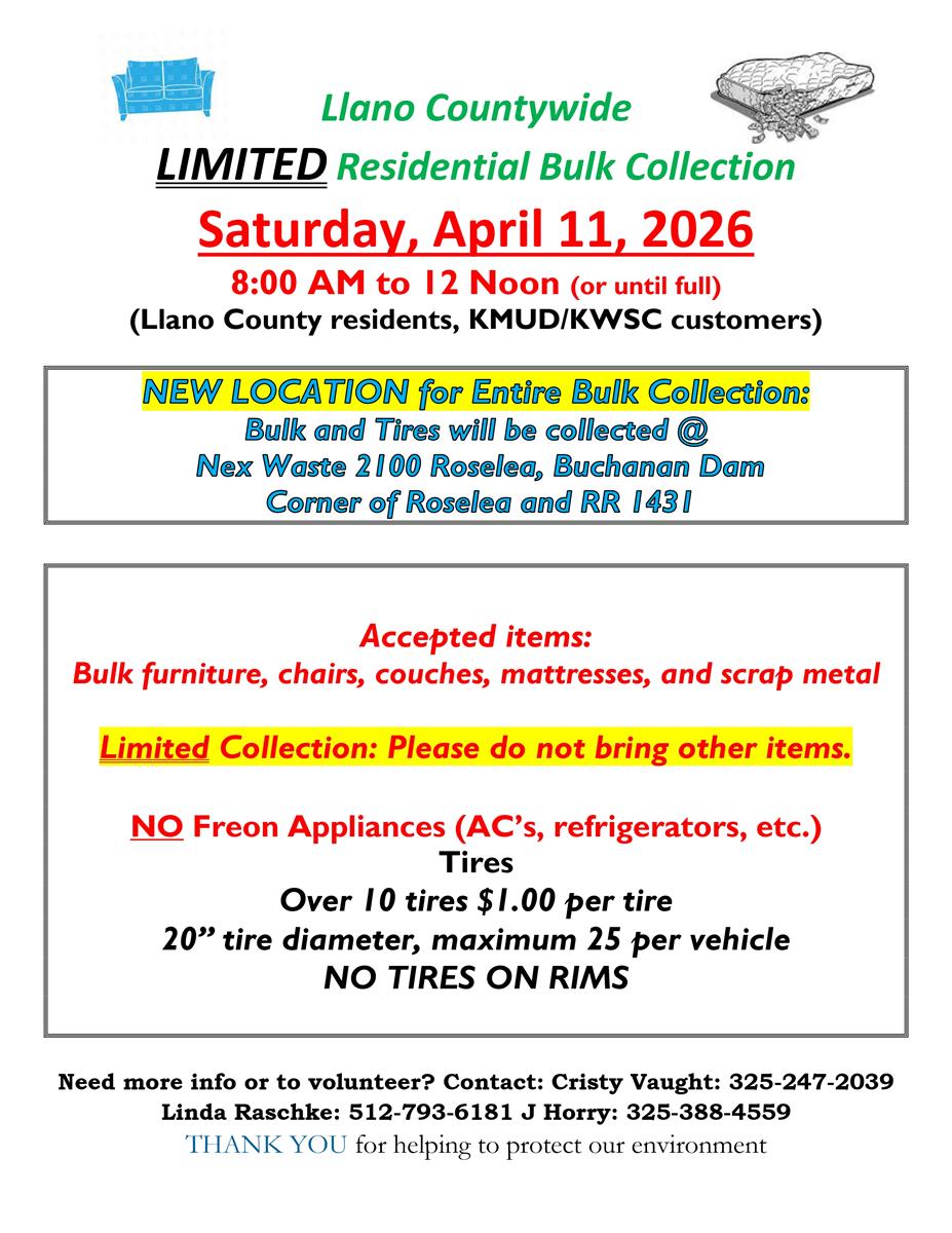 LLANO COUNTY PRESS RELEASE FOR IMMEDIATE DISTRIBUTION